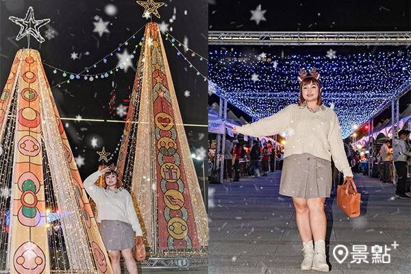 除了有6座璀璨的聖誕樹可以拍,市府也在廣場周圍以數顆紫、藍色燈飾打造夢幻燈海,即日起至12月21日更舉辦公益市集園遊會、親子遊戲站、聖誕祝福站、集點摸彩等系列活動,可以邊逛邊享受浪漫的聖誕氛圍。